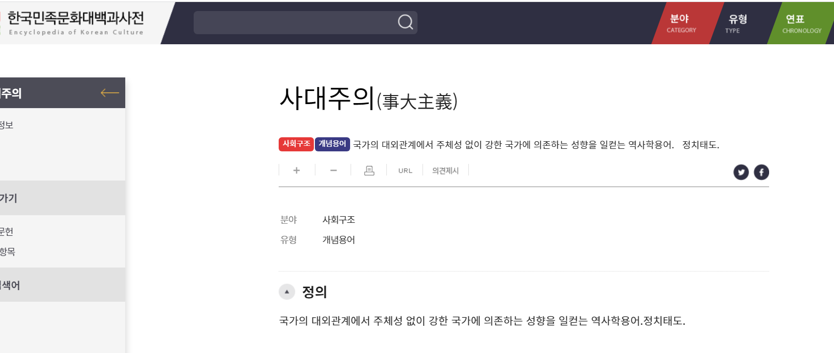 사대주의란 힘 센 나라에 약한 나라가 빌붙어 사는 걸 말한다.